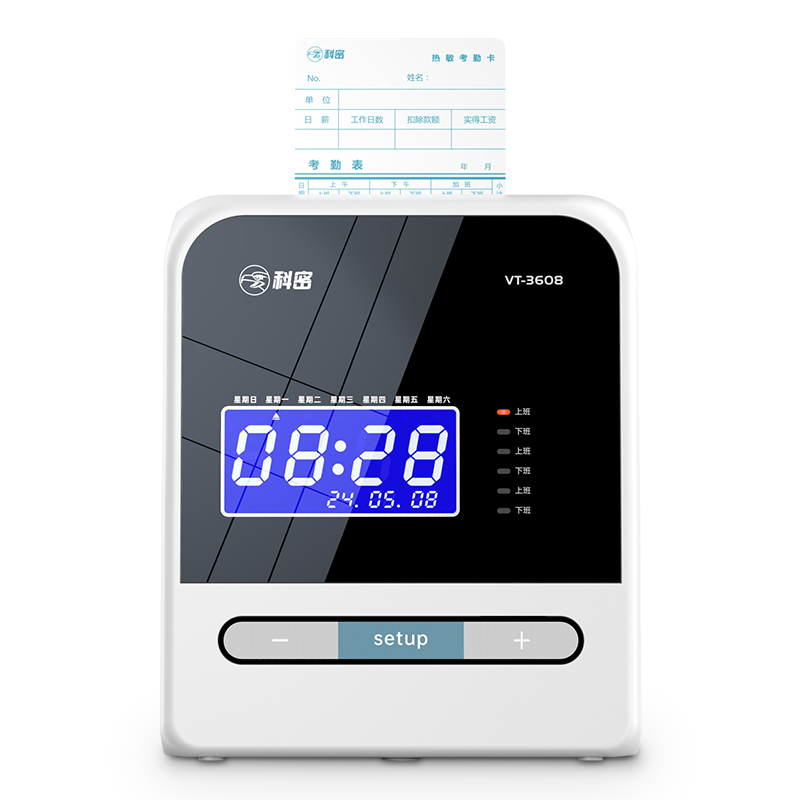 科密熱敏打卡機(jī)紙卡式卡片考勤機(jī)卡紙打卡機(jī)員工上下班出勤工廠工地企業(yè)簽到鐘打卡鐘插卡式
