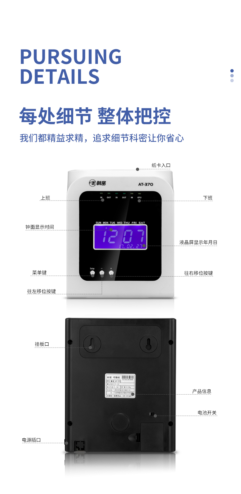科密熱敏打卡機(jī)紙卡式卡片考勤機(jī)卡紙打卡機(jī)員工上下班出勤工廠工地企業(yè)簽到鐘打卡鐘插卡式AT370