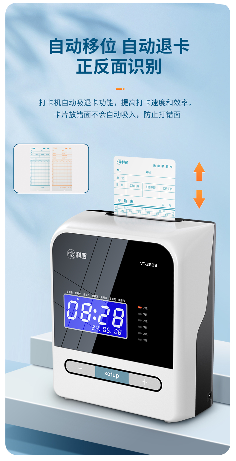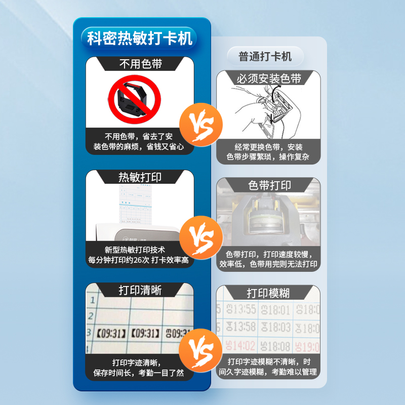 科密(comet) VT-3608 打卡機(jī)考勤機(jī)卡鐘 微電腦考勤機(jī) 熱敏卡紙免色帶打卡機(jī)打卡鐘 自動移位