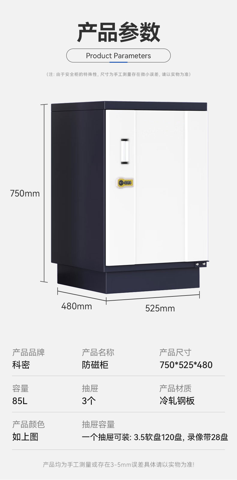 科密FCG-30D 防磁柜硬盤檔案光盤3抽防磁柜防潮防火靜電柜信息安全柜磁盤柜U盤柜CD盤柜 2抽 FCG-30D
