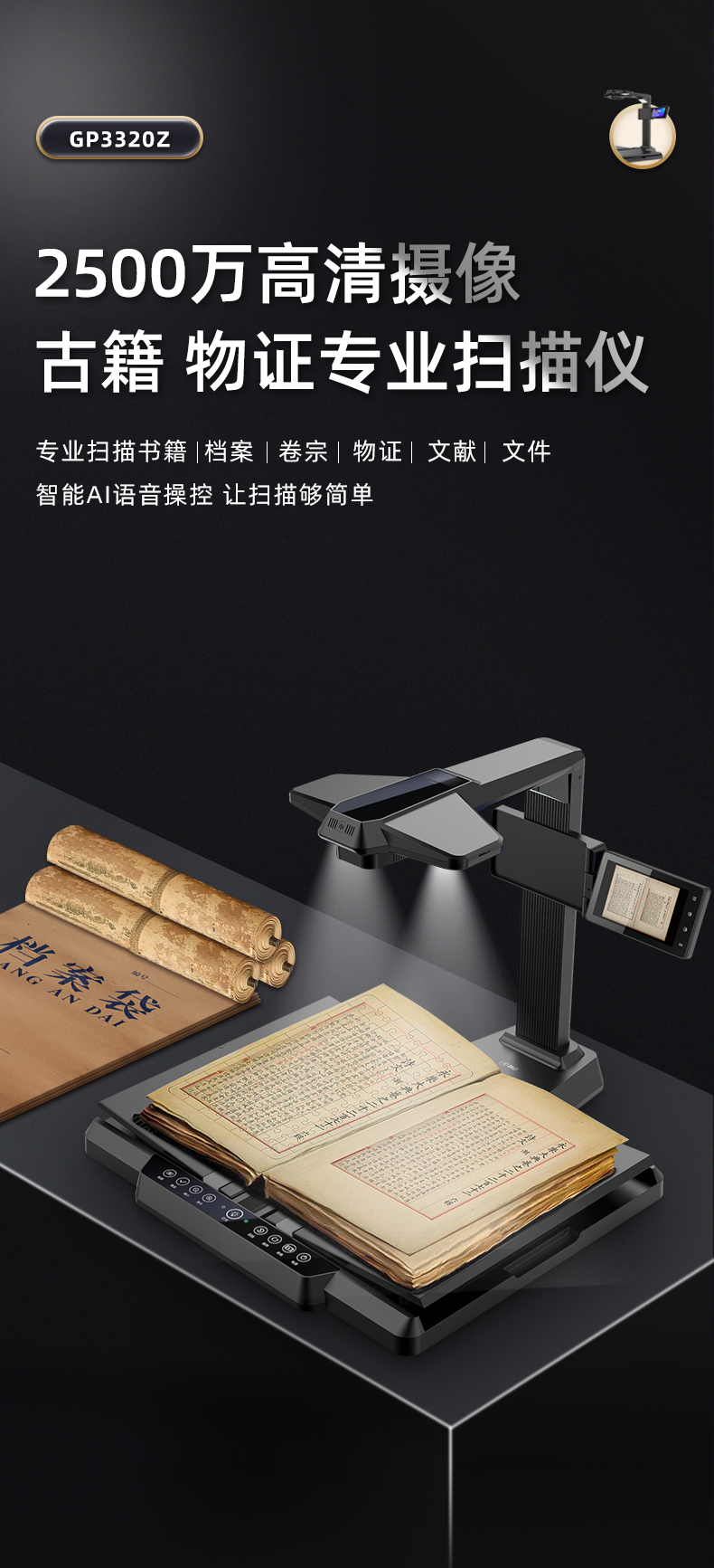 科密 GP3320Z 2500萬高清像素高拍儀 書籍成冊掃描曲面展平 A3A4古籍物證檔案掃描儀