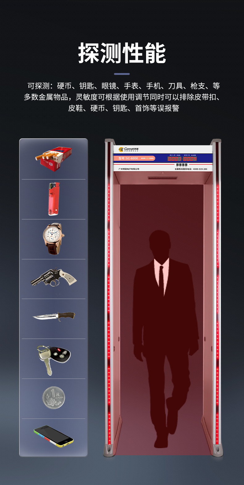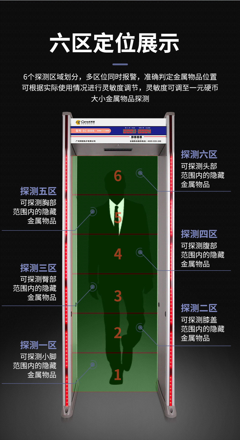 科密安檢門金屬探測(cè)門六區(qū)檢測(cè)工廠防盜手機(jī)車站學(xué)校公檢法SC-8006
