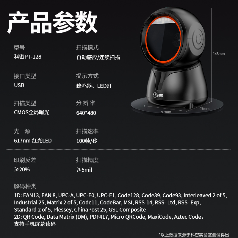 科密(comet)掃碼槍掃描槍 二維碼掃描盒子 收款器平臺(tái) 快遞物流超市商品收銀條碼PT-128 支持國產(chǎn)系統(tǒng)