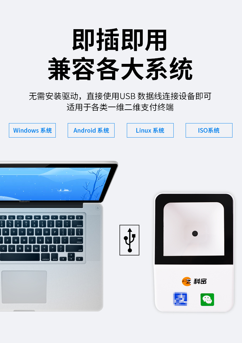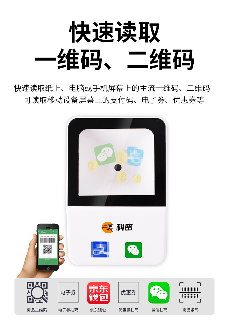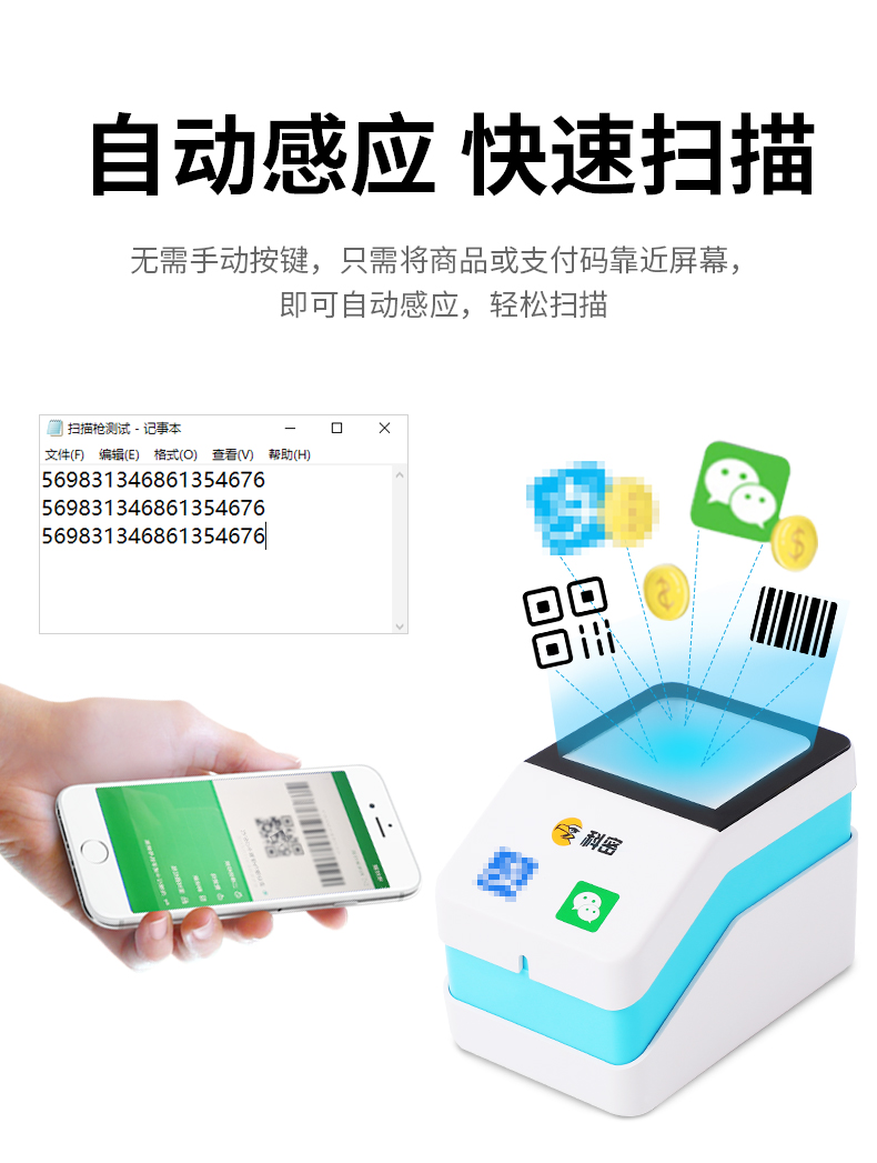 科密(comet)EF09掃描槍掃碼盒子有線(xiàn)一二維碼掃描平臺(tái)收銀掃碼槍 超市餐飲便利店藥店支付掃碼盒醫(yī)保碼