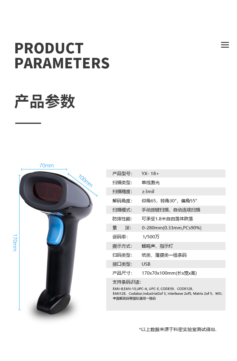科密(comet)YX-18+ 有線一維碼激光掃碼槍掃描槍條碼槍 快遞倉儲物流商品盤點出入庫 即插即用