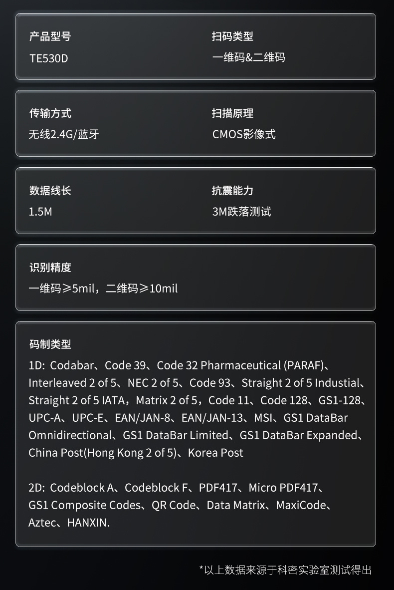 科密(comet)無線掃碼槍條形碼 一二維碼工業(yè)掃描槍 超市倉儲物流條碼掃描器TE530D 支持國產(chǎn)系統(tǒng)