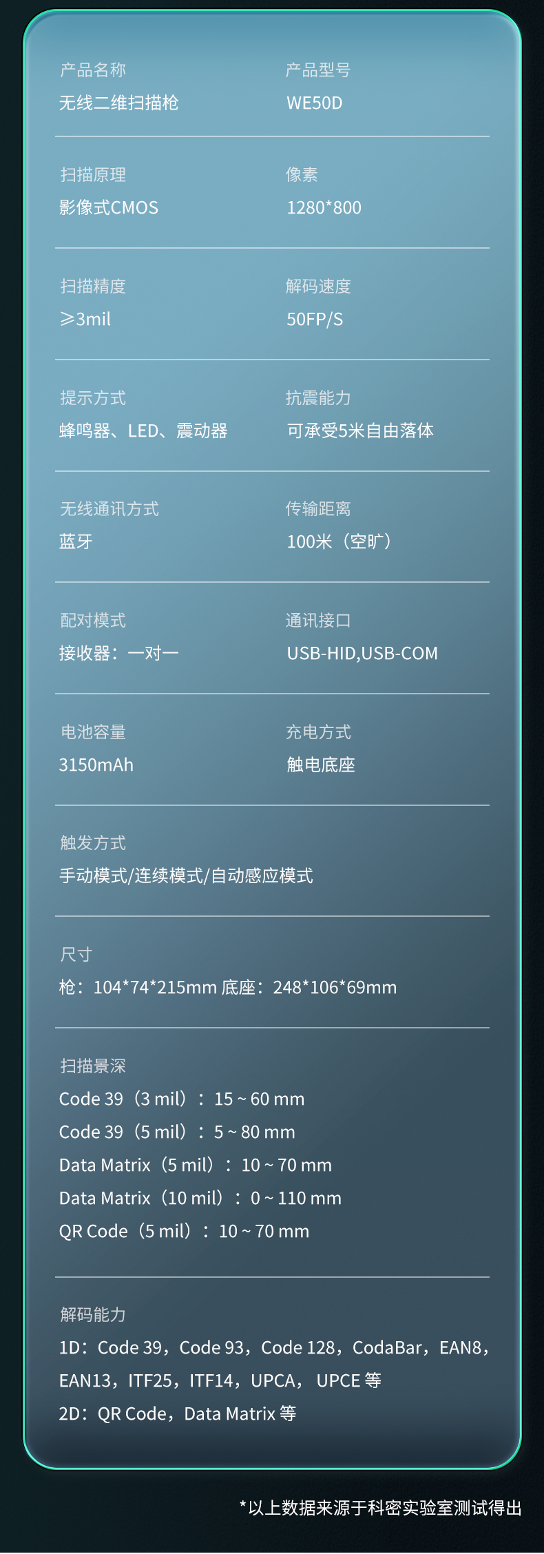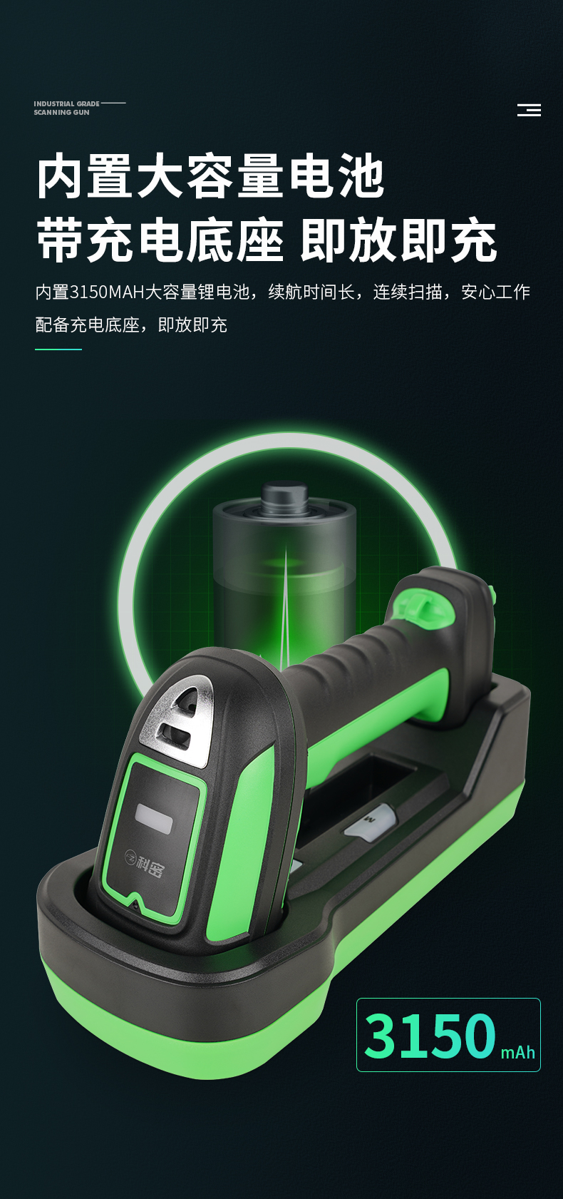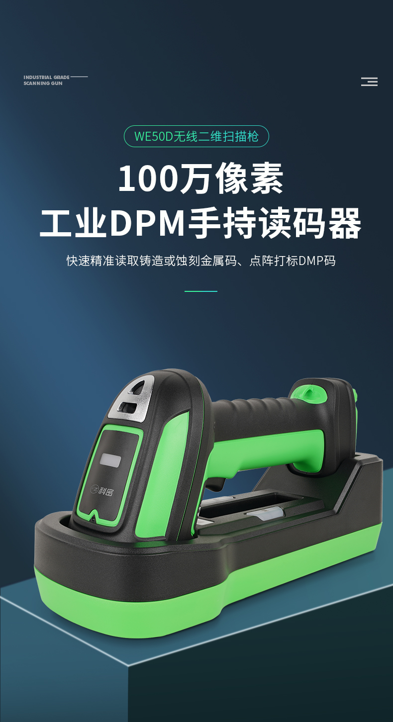 科密WE50D掃描槍無線藍牙條碼槍 一二維工業(yè)級帶座掃碼槍 生產制造高精度金屬雕刻DPM碼