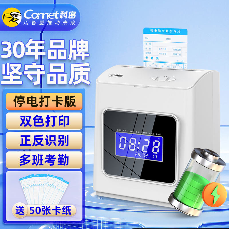 科密(comet)打卡機考勤機卡鐘紙質(zhì)考勤鐘音樂報時快速打卡微電腦自動吸退移位 可停電打卡款 ET-3318D