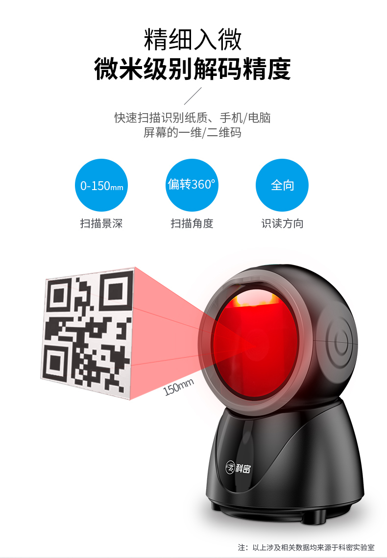 科密掃碼槍 條形碼 二維碼掃描槍 藥店商超零售收款 貨品條碼掃碼器 支付掃碼盒子PT-168 支持屏幕碼