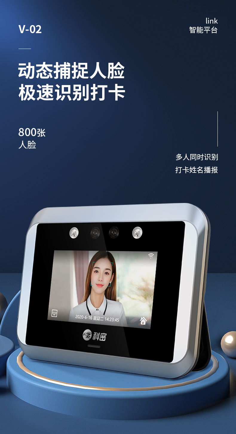 V-02動(dòng)態(tài)人臉識別考勤機(jī)