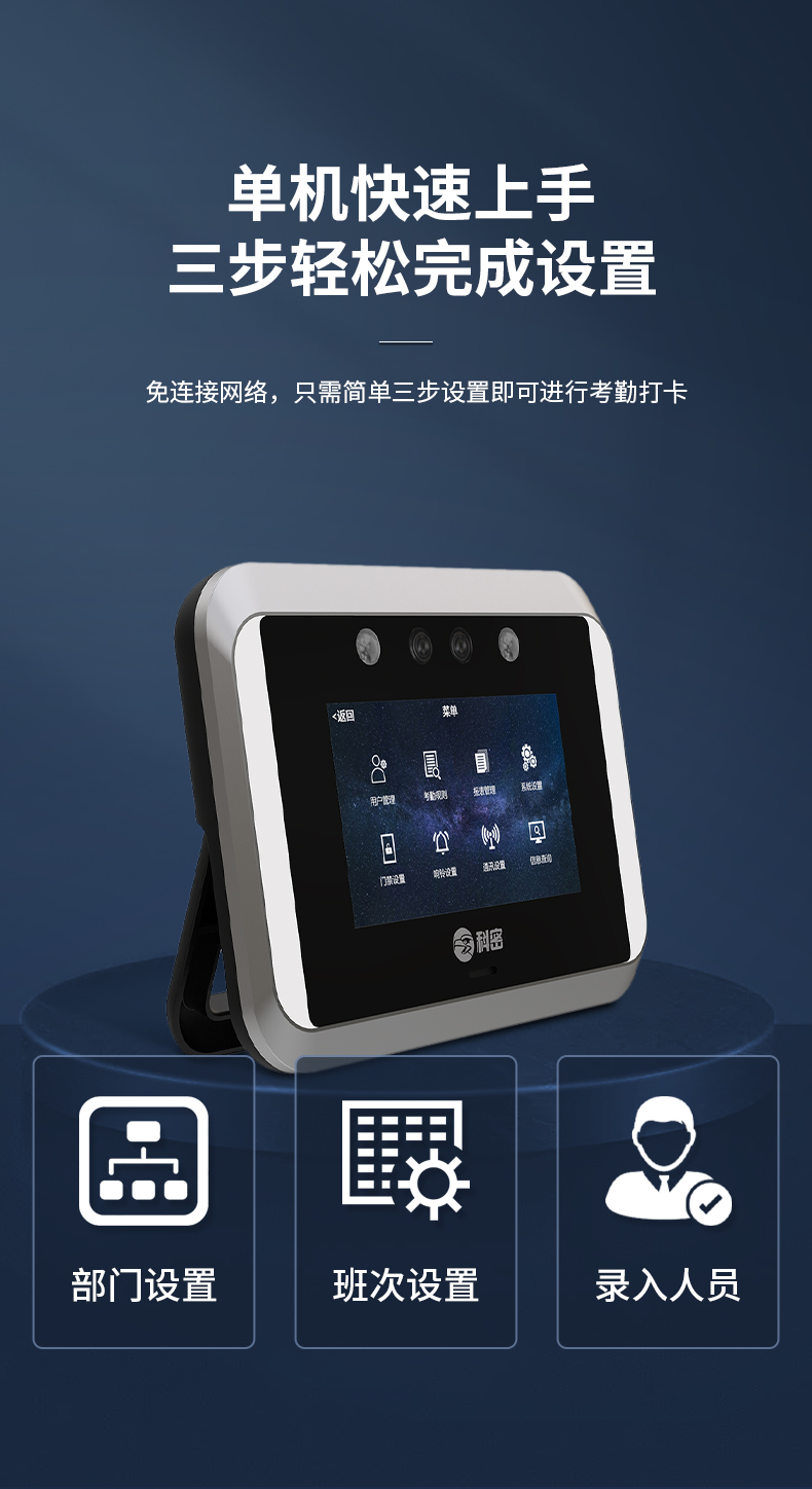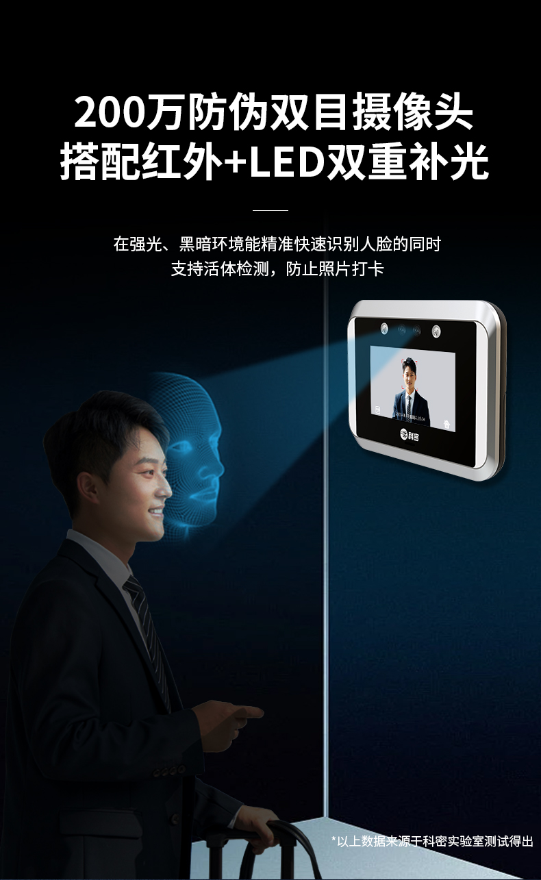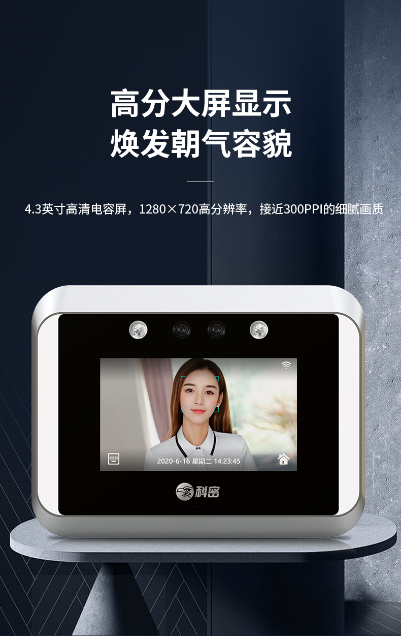 科密(comet) 動(dòng)態(tài)人臉識別考勤機(jī) 無接觸多人同時(shí)打卡機(jī) wifi連接 4.3英寸高清大屏 考勤門禁一體打卡 V-02